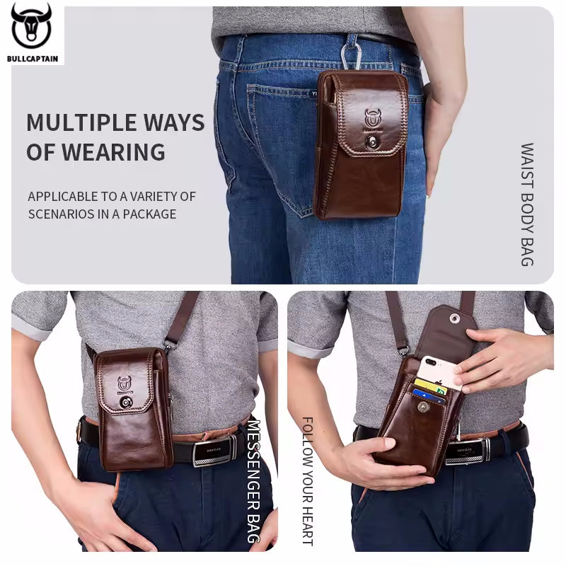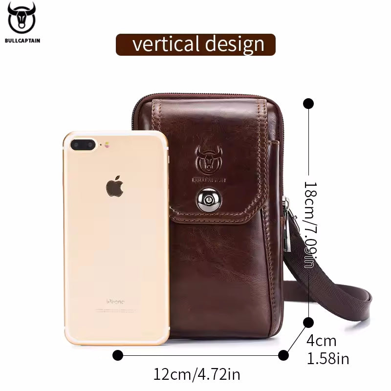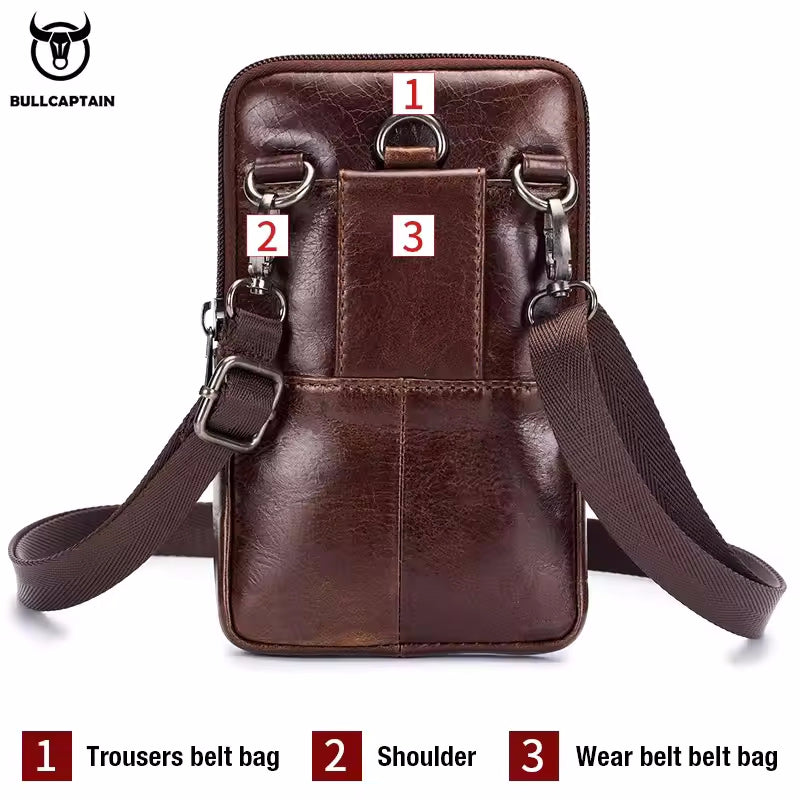 Genuine Leather Men's Waist Packs Phone Pouch Bags
