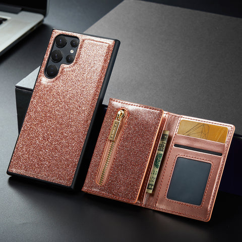 Glitter Leather Magnetic Wallet Case for Samsung Galaxy