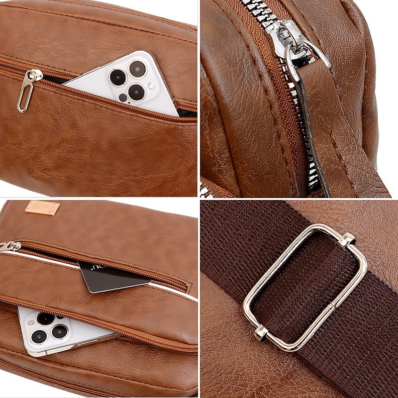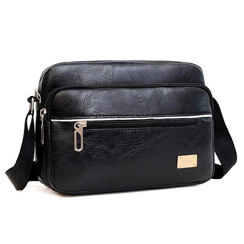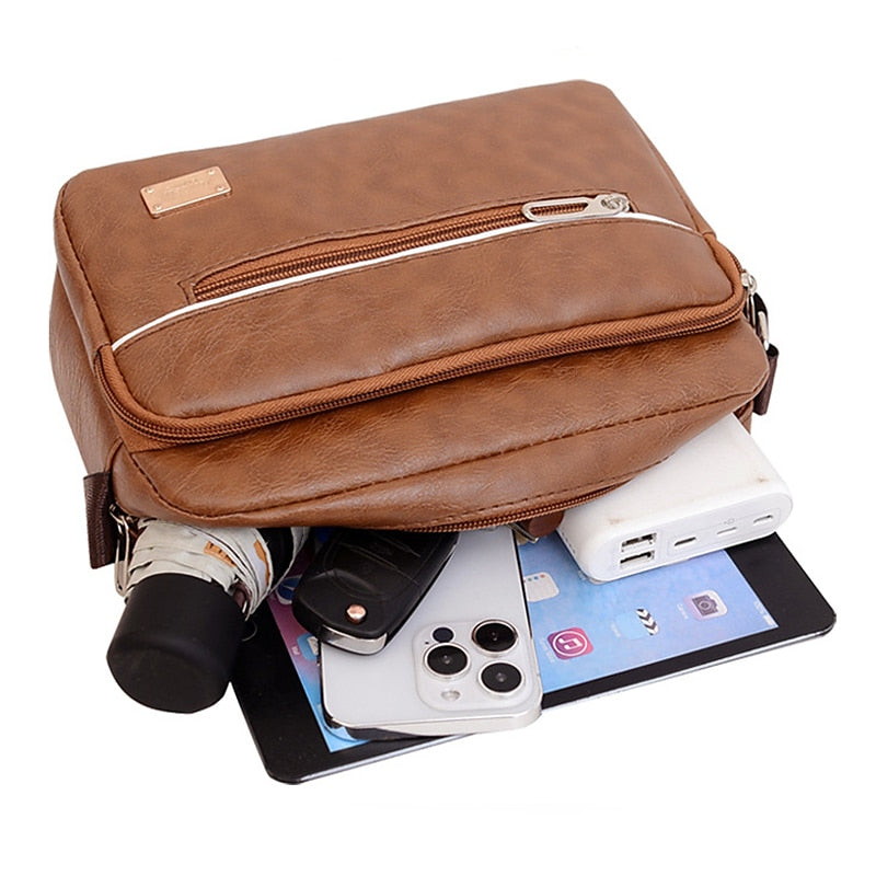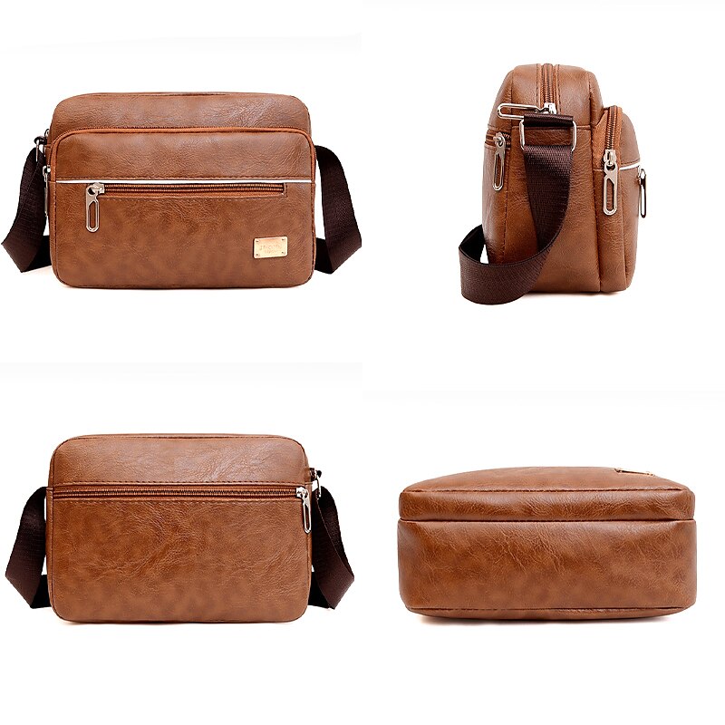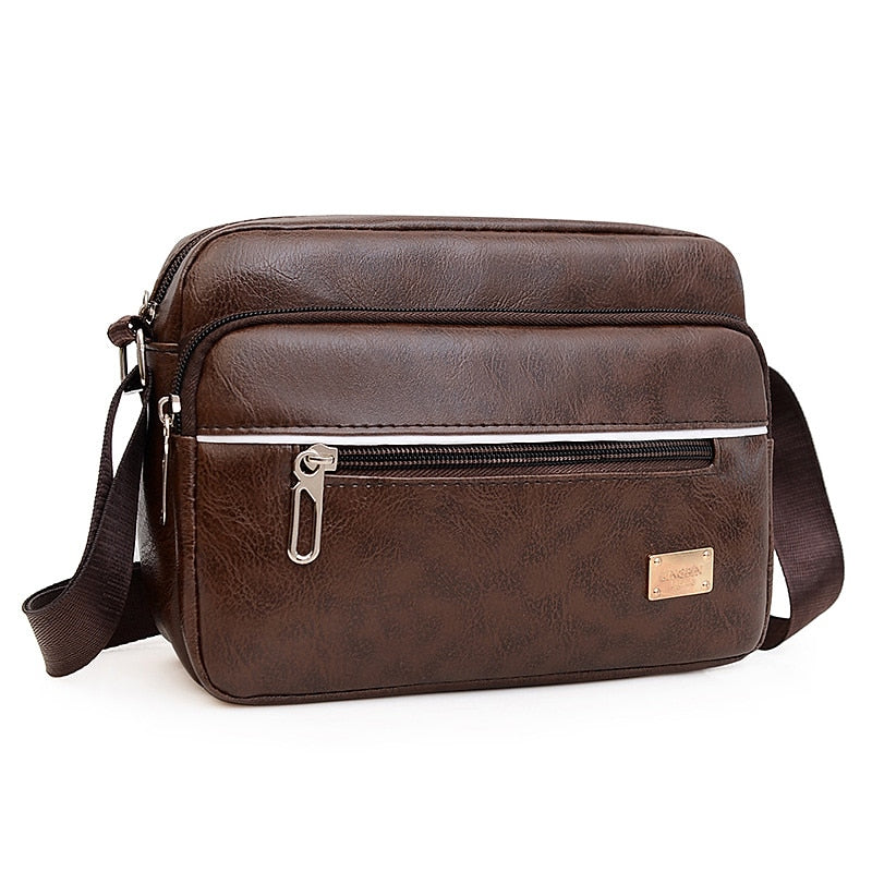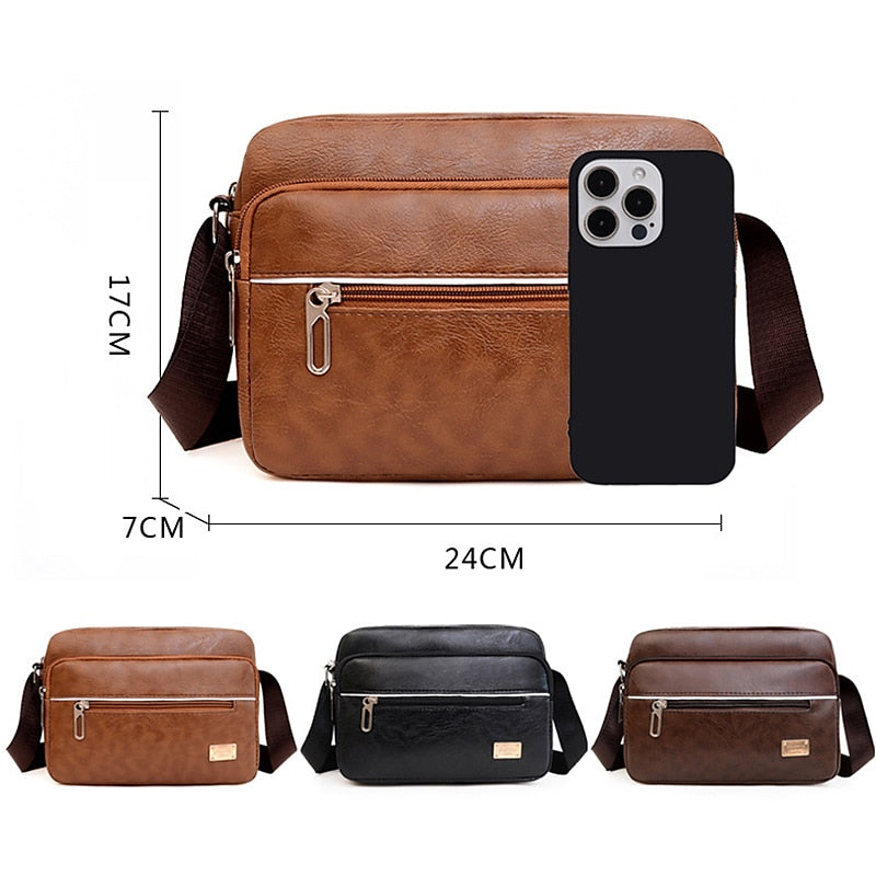 Men's Leather Messenger Bag, Large Capacity Anti-Theft Crossbody Sling for Business Casual (Dark Brown/Black