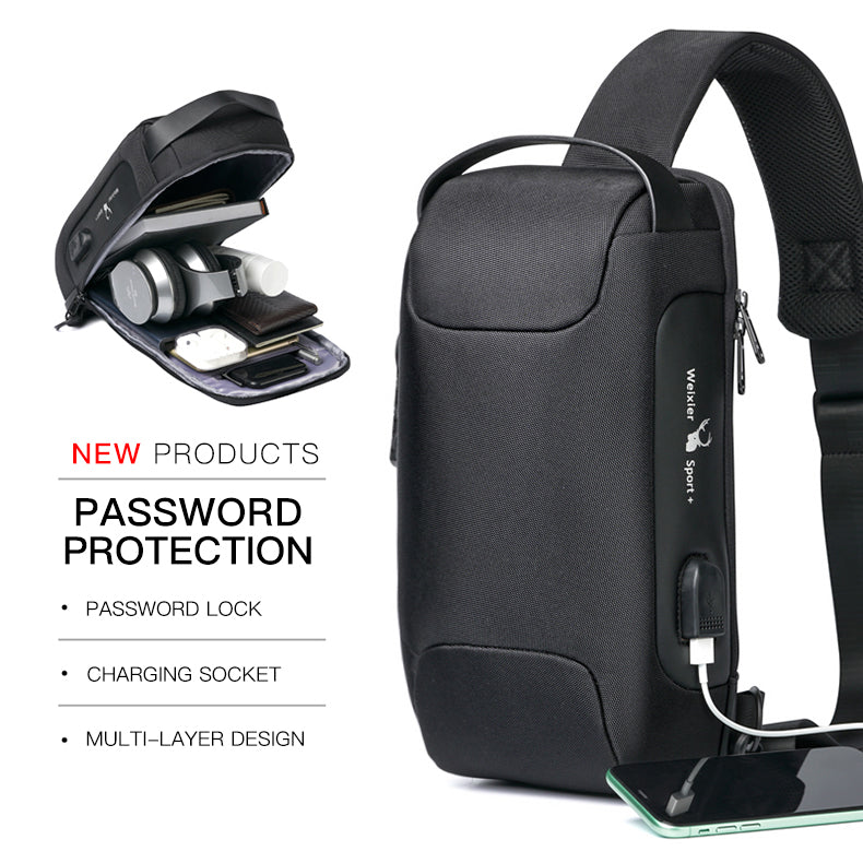 Unisex Waterproof Crossbody Bag with USB Charging & Anti-Theft Sling Chest Pack